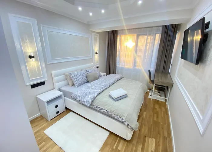 White And Cozy Full Apartment In Centre, Chisinau 아파트에 머무시는 투숙객은 테라스에서 휴식을 취할 수 있으며 도보로 5분 거리에 있는 C.C Iris을 방문할 수 있습니다.